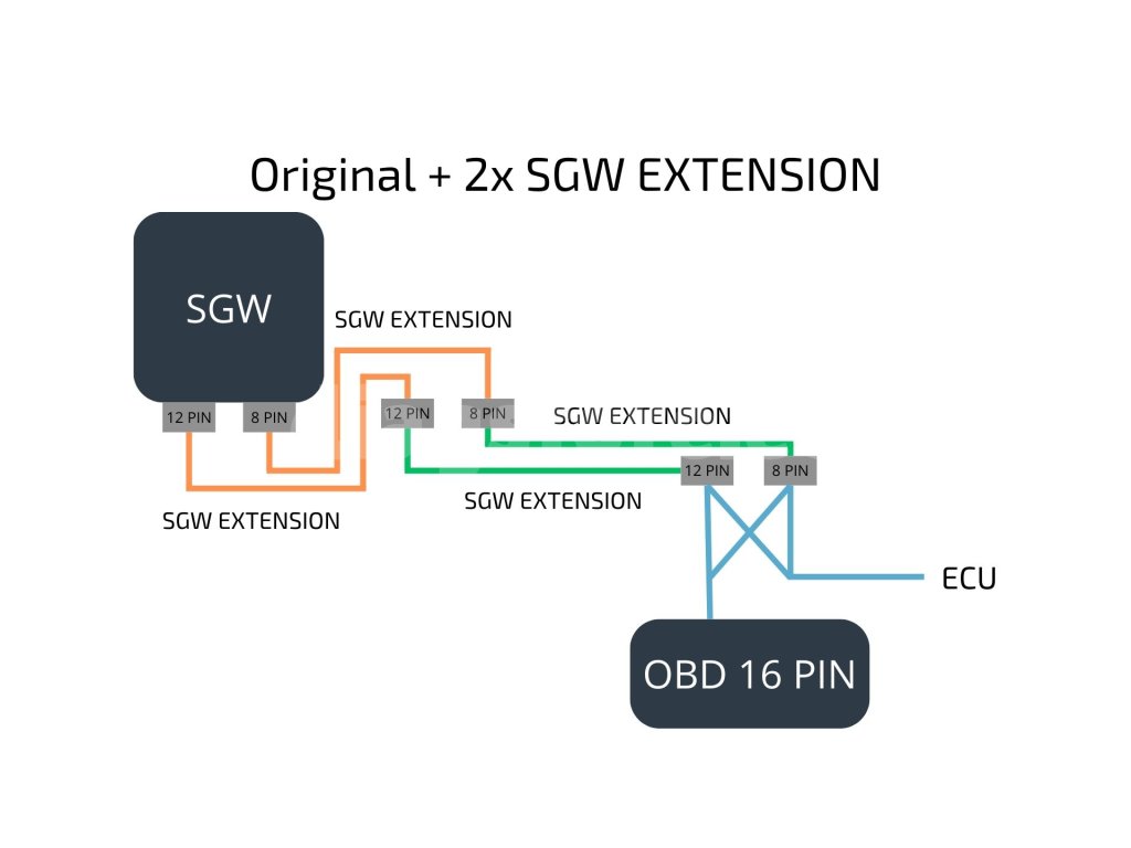 12-poolne pikenduskaabel ja 8-poolne pikenduskaabel, kumbki 40 cm pikk. Pikendusmaterjalid on mõeldud spetsiaalselt Fiat, Alfa Romeo, Jeep ja Chrysler kaubamärkide jaoks, kus need võimaldavad SGW-bypassi lihtsamat ühendamist.